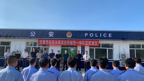 9月8日,白石水库举行了北票市白石水库派出所辅警一中队成立仪式,省水利厅水利事务服务中心副主任程世迎、北票市公安局副局长王玉东、朝阳市水政监察支队支队长周成刚、集团工程技术部负责人邵文东出席仪式。