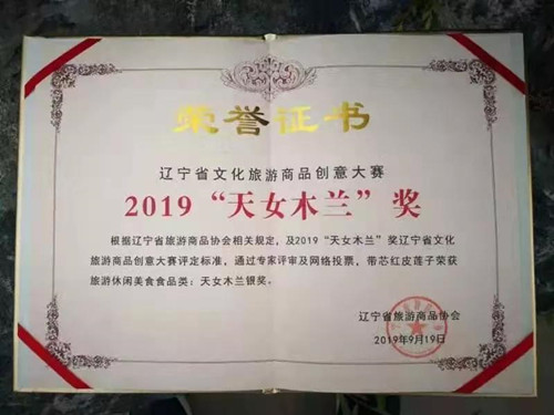 在日前辽宁省旅游商品协会主办,沈北新区文化旅游和广播电视局等承办的“品牌辽宁 文旅创新”——2019“天女木兰”奖辽宁省文化旅游商品创意大赛上,石佛寺水库参赛的辽河七星湖景区特色文旅商品带芯红皮莲子荣获2019“天女木兰”奖辽宁省文旅商品创意大赛银奖。此次获奖填补了辽河七星湖景区特色旅游商品在文化创新方面的空白,标志着拥有辽宁符号的旅游商品品牌的诞生,带芯红皮莲子的推出,将有效丰富辽河七星湖景区旅游服务内容,延伸旅游消费链条,为石佛寺旅游和经营增添了新的亮点和特色。
