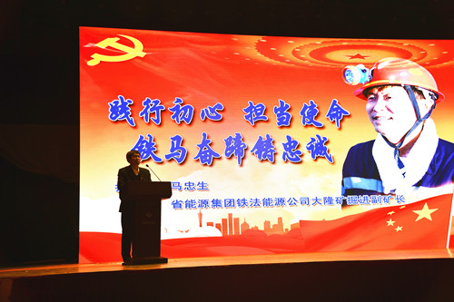 马忠生同志是省能源集团铁法能源公司大隆煤矿副矿长,党的十九大代表。参加工作37年来,他矢志不渝地奋斗在井下掘进一线,即使身患顽疾,仍然践行入党初心、牢记使命担当,将最美好、最宝贵的年华无私奉献给了煤矿掘进事业,被称作累不倒、摧不垮、拽不走的“铁马”,先后获得全国劳动模范、全国五一劳动奖章、“同煤杯”感动中国十大杰出矿工、辽宁省优秀共产党员等荣誉。