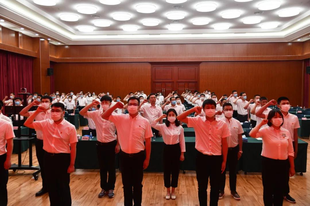 报告会开始前,集团党委组织新党员宣誓,老党员重温入党誓词。面对鲜红的党旗,新老党员庄严地举起右手,铿锵有力的铮铮誓言发自肺腑,让每名党员心潮澎湃,热血沸腾。短短的12句入党誓词,传达出了身为共产党员的责任感与使命感,展示了集团广大党员干部对党的事业奋斗终身的坚定理想和不变追求。