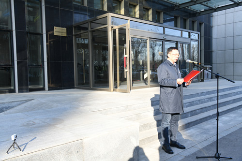 11月29日下午,辽宁省监察委员会驻省水资源管理集团有限责任公司监察专员办公室揭牌仪式在集团办公楼门前举行。省纪委监委第三监察室主任周慧哲,集团党委书记、董事长王福林共同为监察专员办公室揭牌,集团党委副书记、副董事长、总经理谷长叶主持揭牌仪式,集团党委班子成员、部分单位班子成员及总部中层干部共30人参加了揭牌仪式。